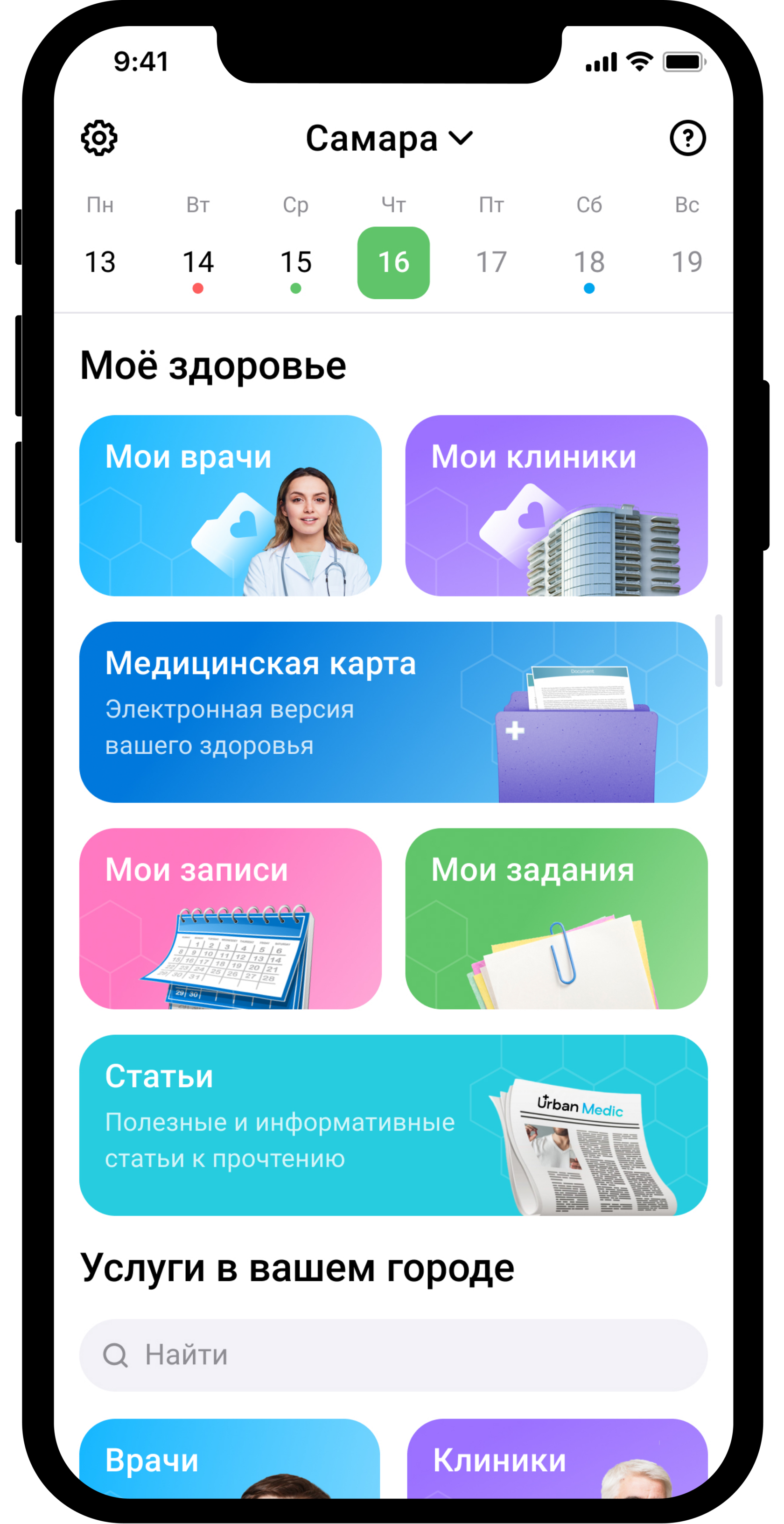UrbanMedic – практикамен айналысатын дәрігерлер мен емдік дене шынықтыру саласындағы мамандардың қатысуымен Ресейде жасалған бағдарламалық кешен, ол келесі мүмкіндіктер береді: